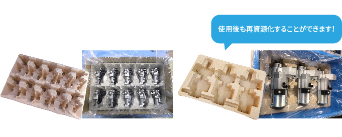 さまざまな製品に合わせた設計が可能です。内容に応じた適切な形状設計・原料の選択を行うことができます。また、ダンボール仕切りと違い、組み立て作業が不要なため、梱包の作業性も向上します。